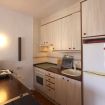 La cucina open space condivide il soggiorno-sala da pranzo con mobili funzionali e un nuovo divano letto per un massimo di 2 persone.