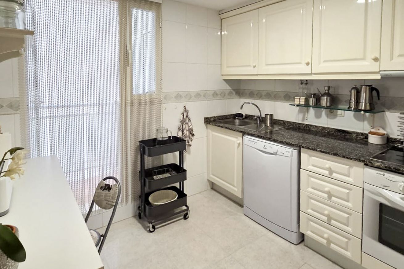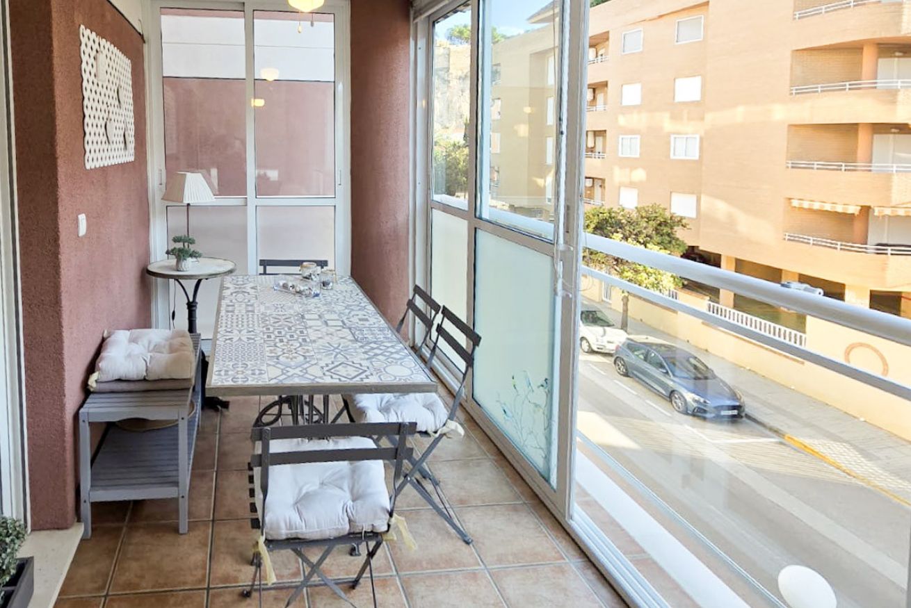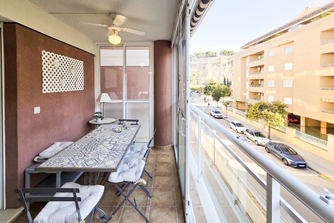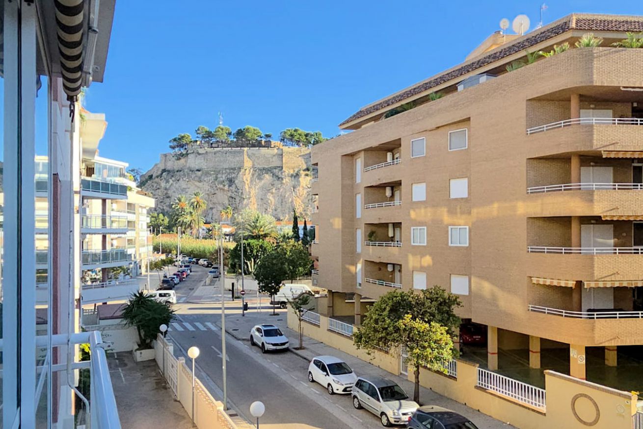 El apartamento de 84 m2 construidos se distribuye en amplio Salón Comedor, Comunica con la terraza acristalada. y vistas al castillo de Denia.