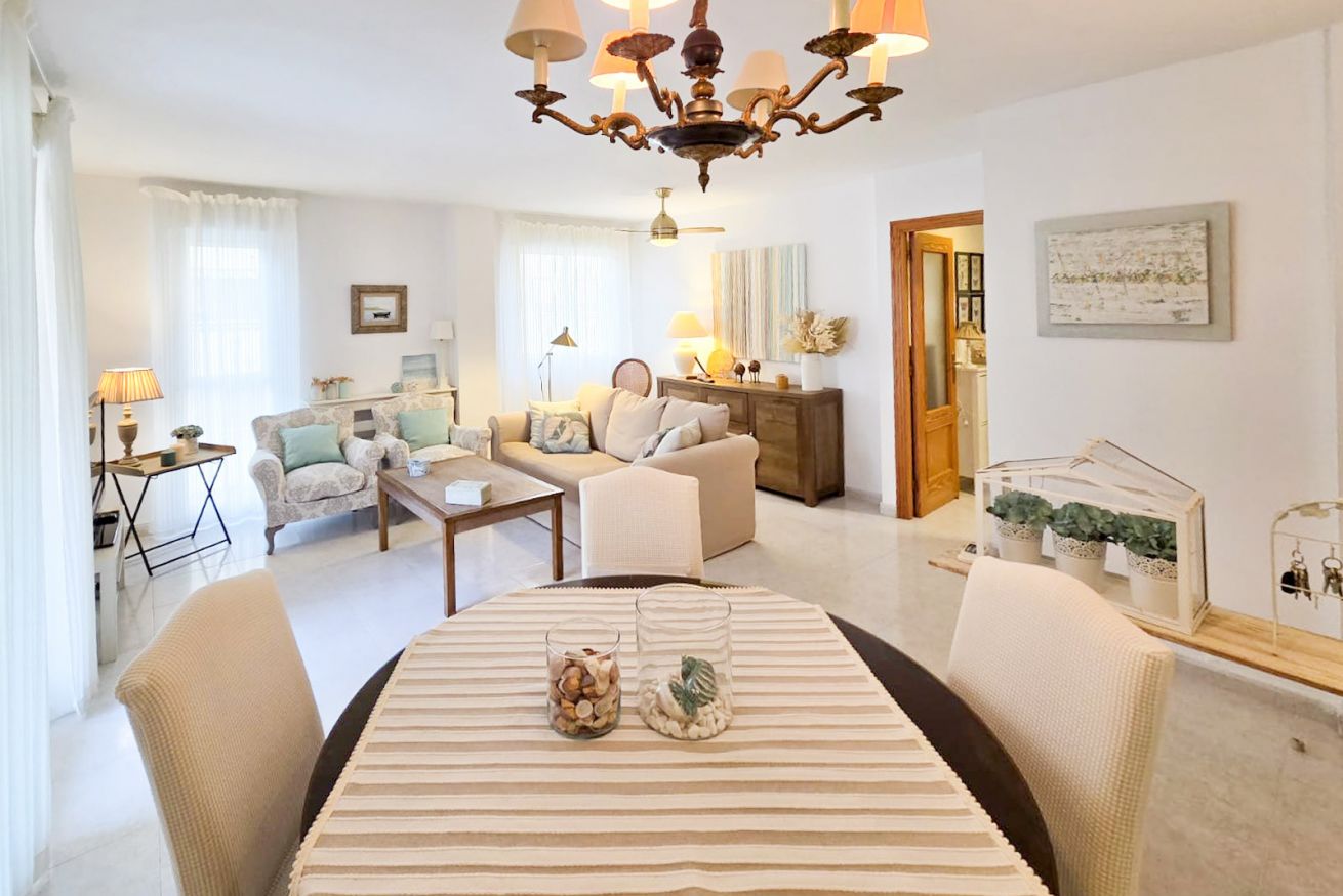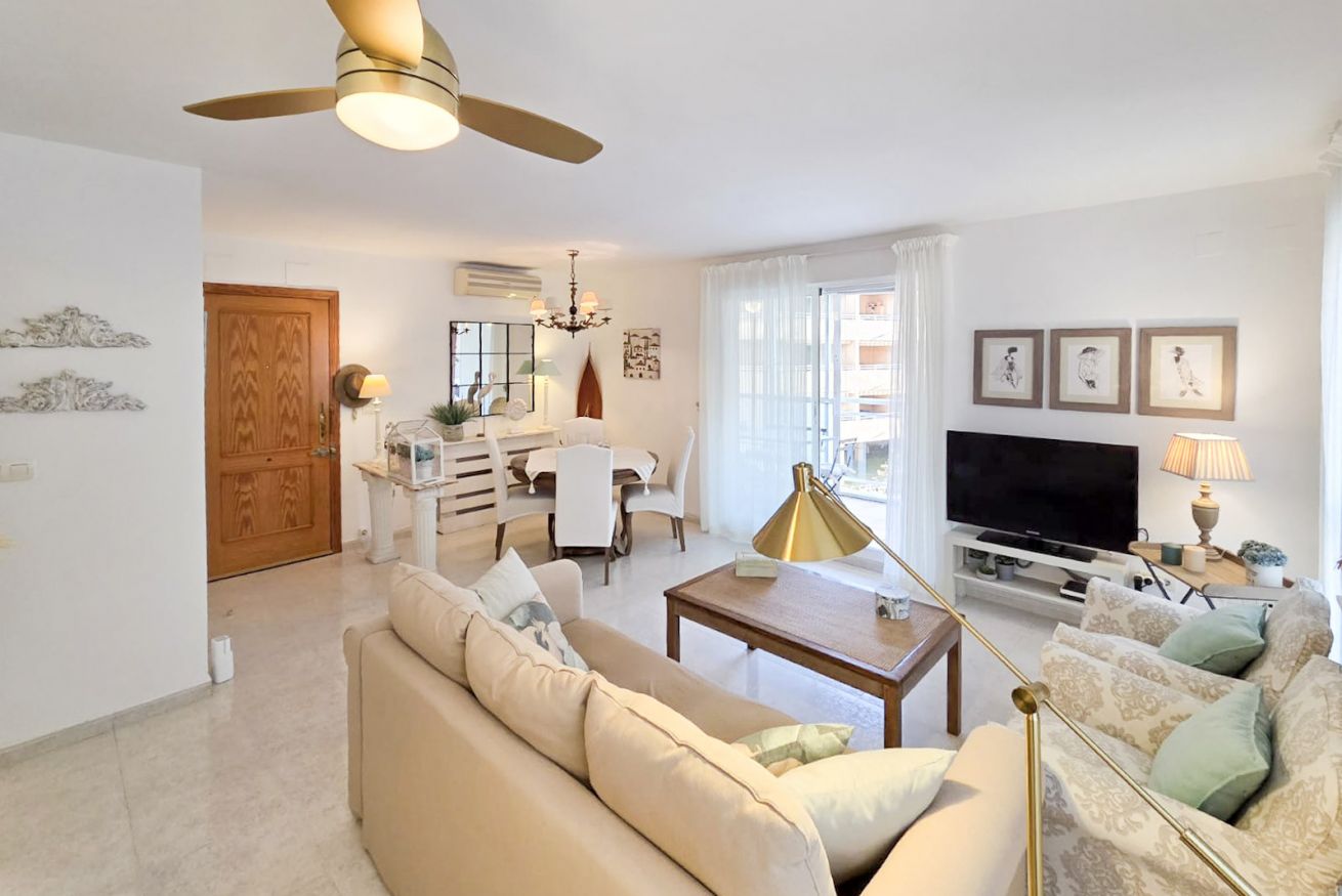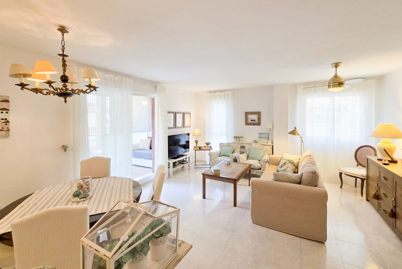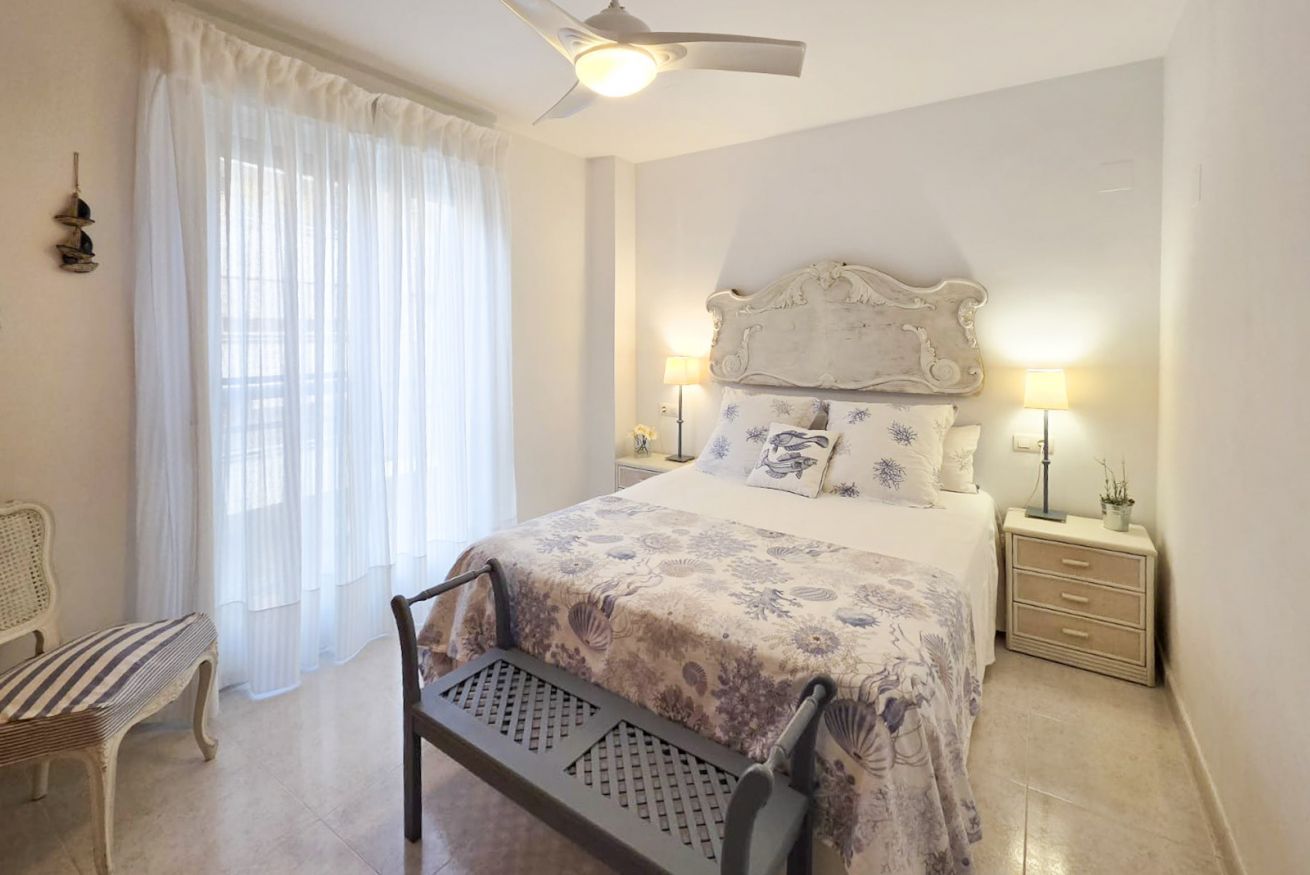 El apartamento de 84 m2 construidos se distribuye en amplio Salón Comedor, Comunica con la terraza acristalada. y vistas al castillo de Denia.