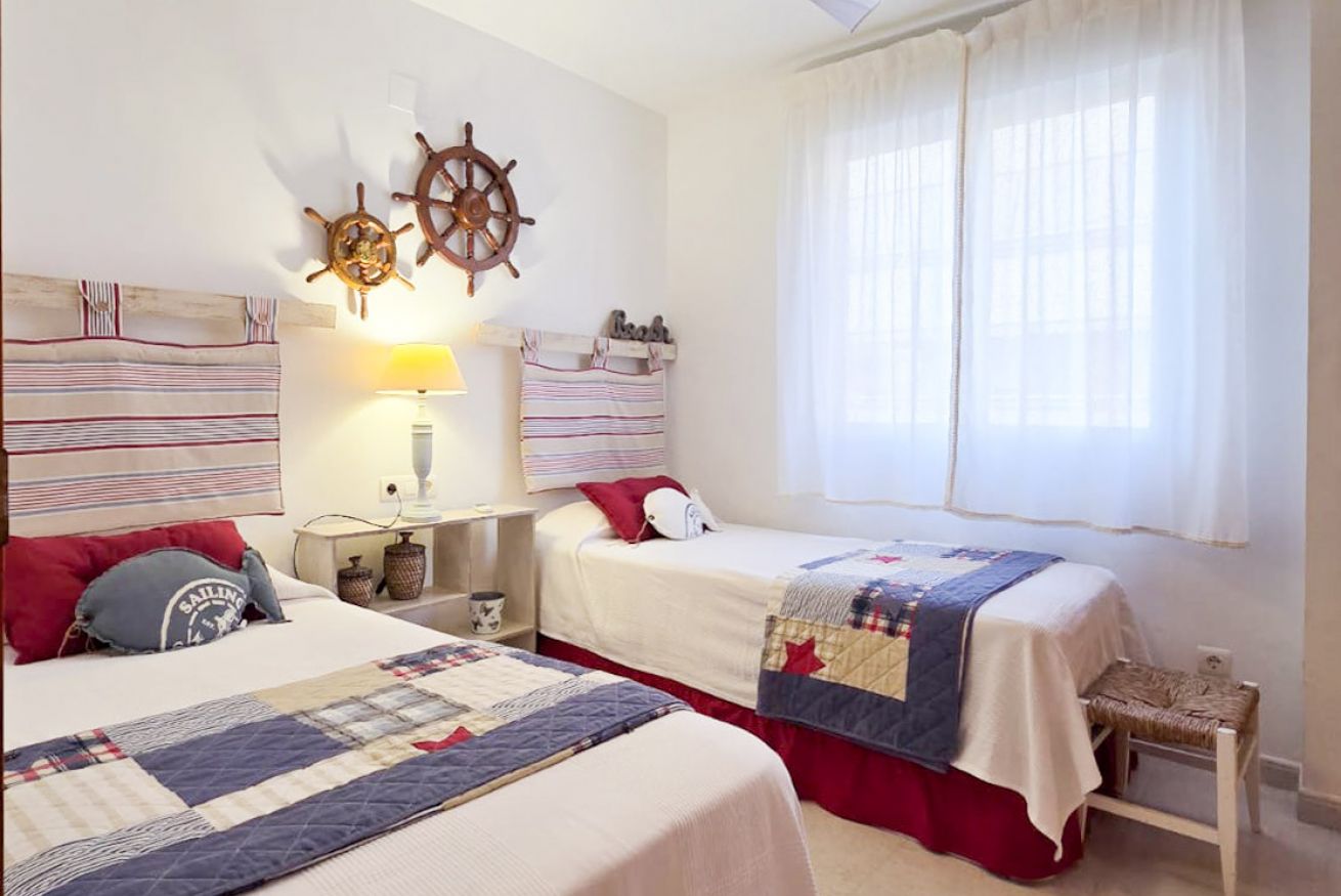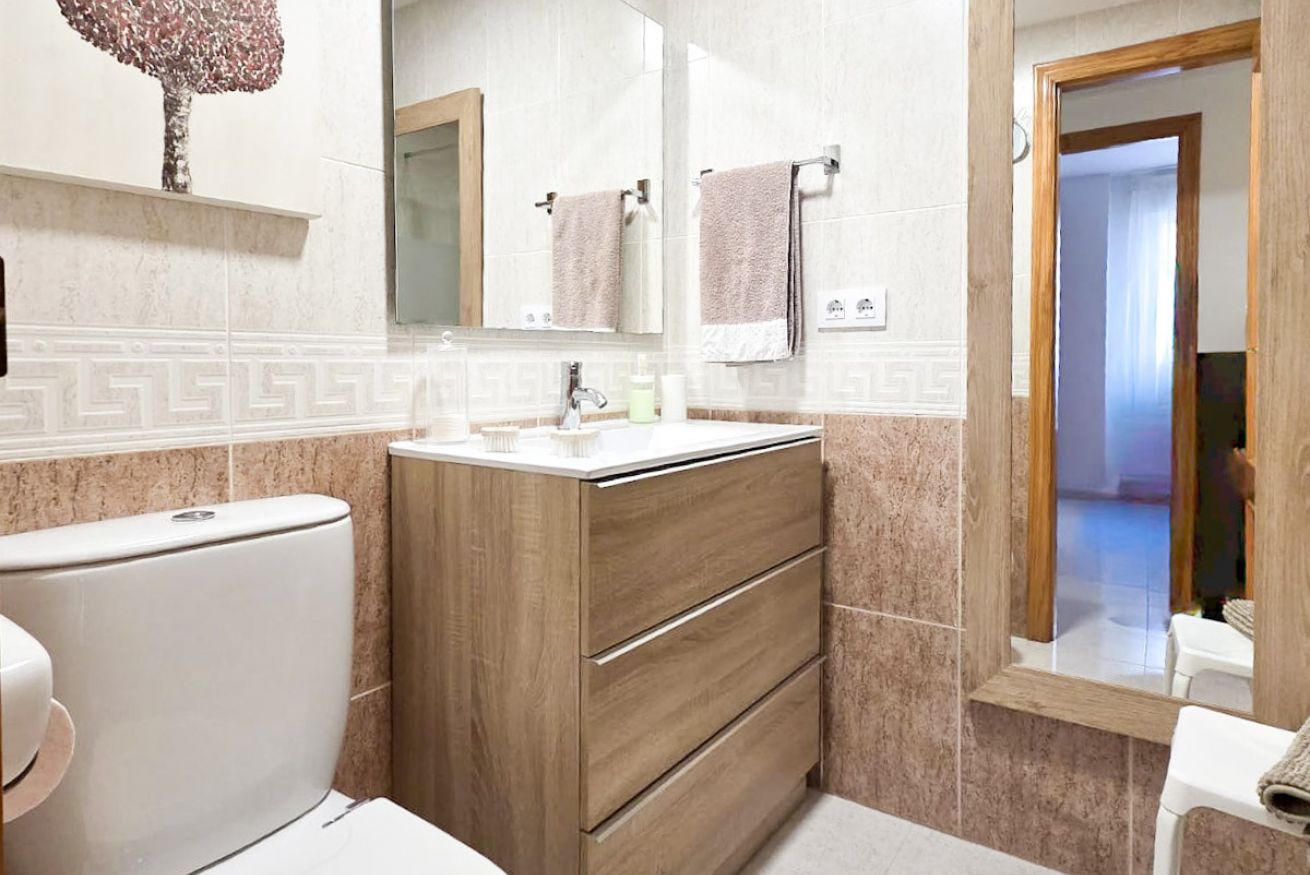 Dispone de 2 Dormitorios dobles, 2 Baños ambos con ducha. Cocina completa independiente, totalmente equipada con galería y lavadero. Tiene amplios armarios en cada habitación. Cómoda terraza con mobiliario moderno y Aire acondicionado en salón -comedor El salón cuenta con mobiliario moderno y confortable para 4 pax. Situado en 2ª planta con ascensor, dispone de plaza de parking dentro del residencial.