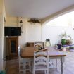 Il soggiorno con mobili nuovi e moderni, SMART TV, WIFI e aria condizionata centralizzata in tutta la casa, con accesso a una piacevole e ampia terrazza con giardino e mobili completi (tavoli e sedie, sdraio), da cui si possono osservare i bambini in giardino e in piscina.