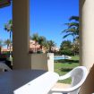 Dos amplios ventanales con bonitas vistas al residencial que nos da acceso a una agradable terraza amplia con moderno mobiliario chill out y mesa exterior y toldo orientado al Sur-Este. para disfrutar de desayunos, comidas y cenas durante su estancia. con vistas al jardín y piscina