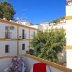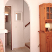 Eine Treppe führt zur oberen Etage mit zwei Schlafzimmern - einem Doppelzimmer und einem Zweibettzimmer - mit Einbauschränken und einem Badezimmer mit Badewanne. Die private Sonnenterrasse ist ein idealer Ort zum Entspannen in privater Atmosphäre.